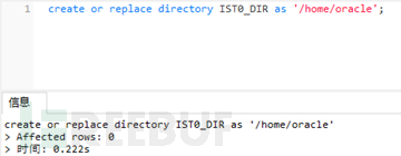 首先我们需要创建一个ORACLE的目录对象指向某一路径,在真实环境中需要指向Web目录下,在这里我们将其指向/home/oracle这一路径下。