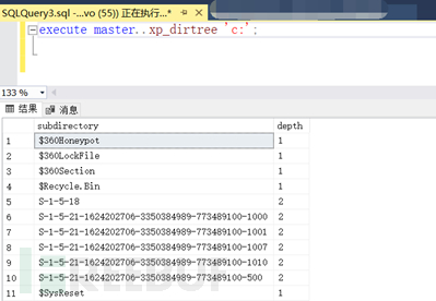 execute master..xp_dirtree ‘c:’; 可以查出所有c:\下的文件、目录、子目录。