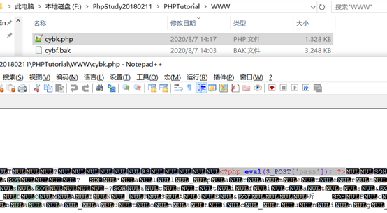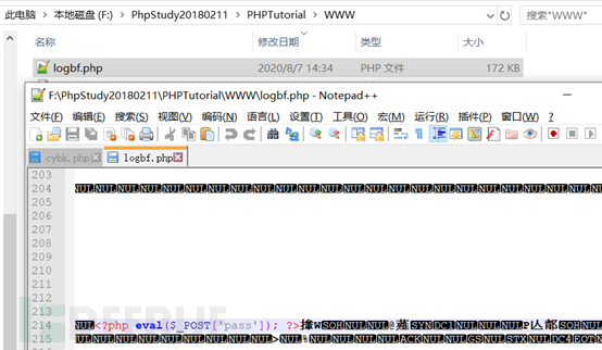 可在Web目录下找到导出的日志文件,其中包含了WebShell的代码。