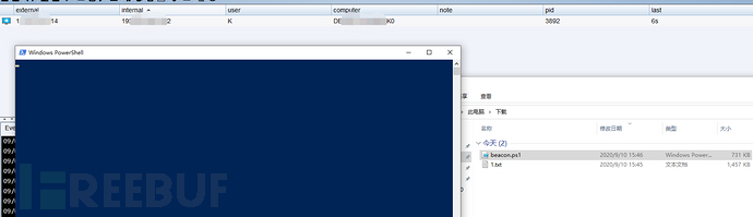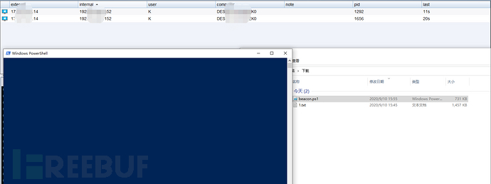 注:这里有一点要注意,我把cobalt strike恶意代码链接复制出来另存为一个txt,服务器另外起了一个http服务提供这个txt访问。可以看到上线成功了。