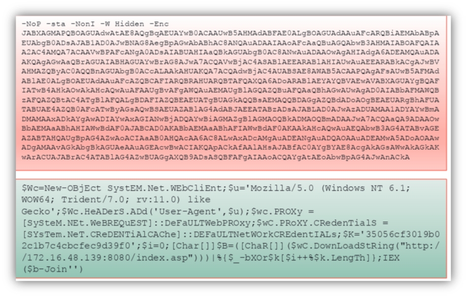 在下图中,展示了使用Base64编码后的PowerShell脚本的示例。