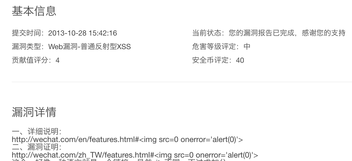 看了上面的例子,我想大家已经可以发现,前面的几个XSS其实都是基本通过昵称的位置提交攻击代码导致了XSS的产生,这其实就是一种XSS被动挖掘的技巧。其实漏洞挖掘,特别是XSS,有时候是靠主动挖掘,但更多的时候也可以通过被动的方式发现,特别是类似QQ、微信这种一号多用的情况,可以想象你的微信昵称、QQ昵称或者签名等,在不同的应用、网页中登录,你的昵称就会在不同的地方显示,这些昵称在微信、QQ本身不会导致问题的产生,但到了其他页面呢?也许就会导致问题的产生。